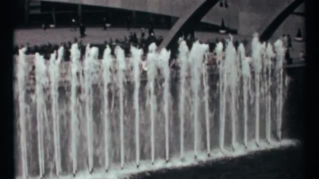 1967: fountain at the open place and people are walking and an arch also there at morning time TORON