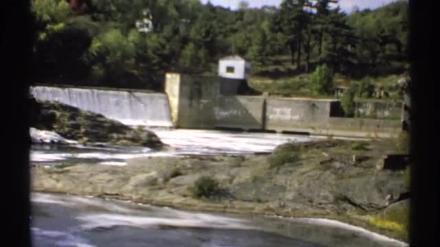 > 1971: view of rushing dam and spillway in the summer time MAINE