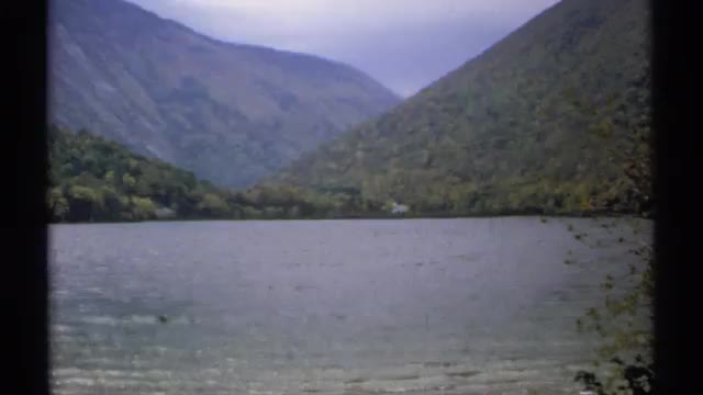 > 1971: a cute nature that contain lake full of water near mountain and trees and a board also contain