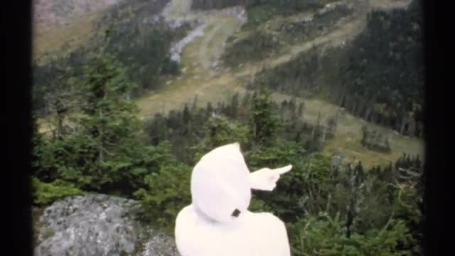 > 1971: lady in white taking in the view from a mountain top VERMONT