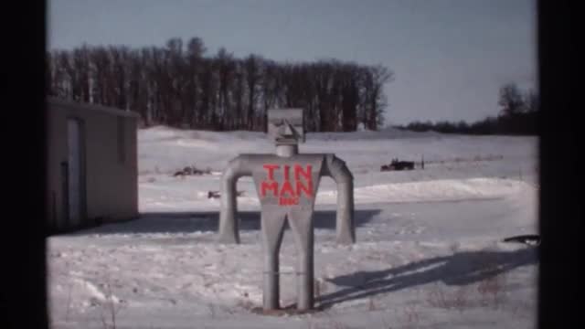 1971: tin man plumbing/heating mascot in the snow & storefront WISCONSIN