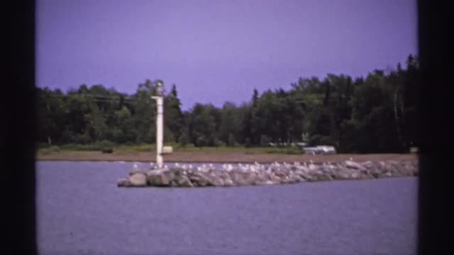 > 1971: a pillar located at the water and looks cute it looks like a lake and plants are surrounding t
