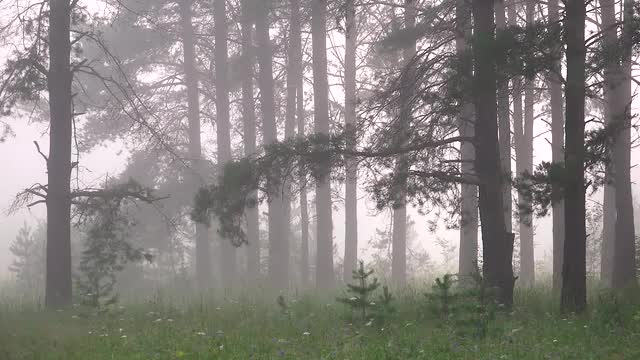 545096 - Time lapse of fog flowing through pine tree forest
