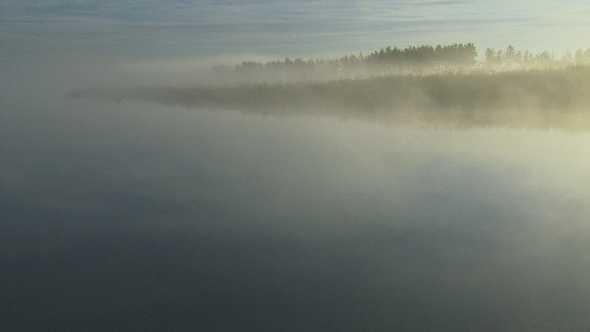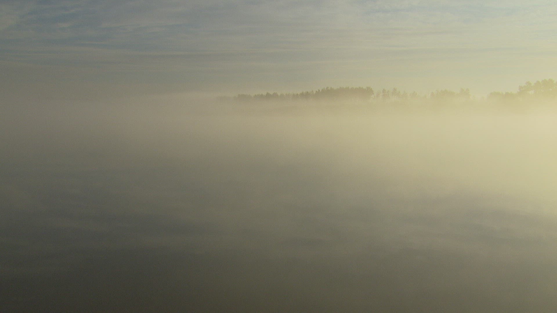 > Boat With a Fisherman on a Foggy Mist in Morning