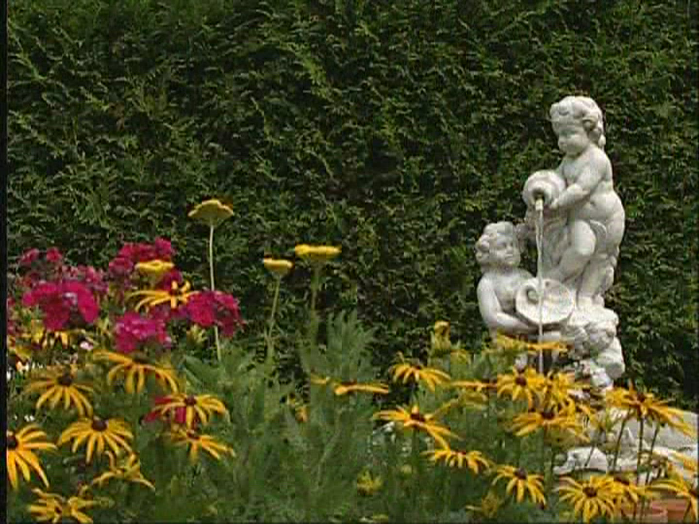 > 1971: still short of marigolds by a pond in brilliant orange, red, yellow, and salmon ROLLAG MINNESO