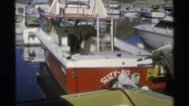 1975: one red speed boat sitting idly among a number of white boats GUAYMAS MEXICO