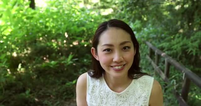 546339 - Portrait of attractive young Japanese woman in a city park