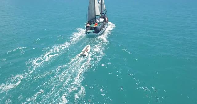 655577 - Aerial Shot Boat cool drive towards the Sunset