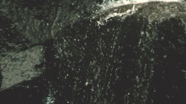 Water Flow Down by Mossy Stone Light Reflection in Pure Water Drop Preservation of Water Stocks Safe
