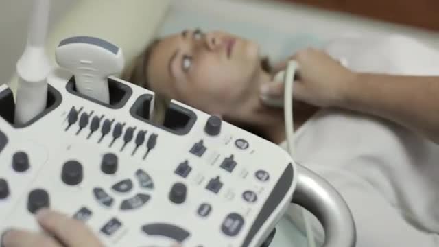 Doctor taking a sonogram of patients neck in the hospital