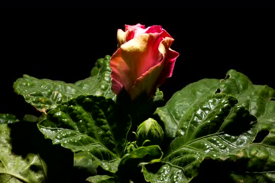 Time-lapse of blooming Red Hibiscus Flower on Black background