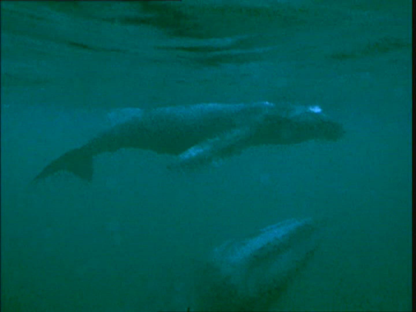 A clumsy humpback calf swims towards its mother in Northern Norway.