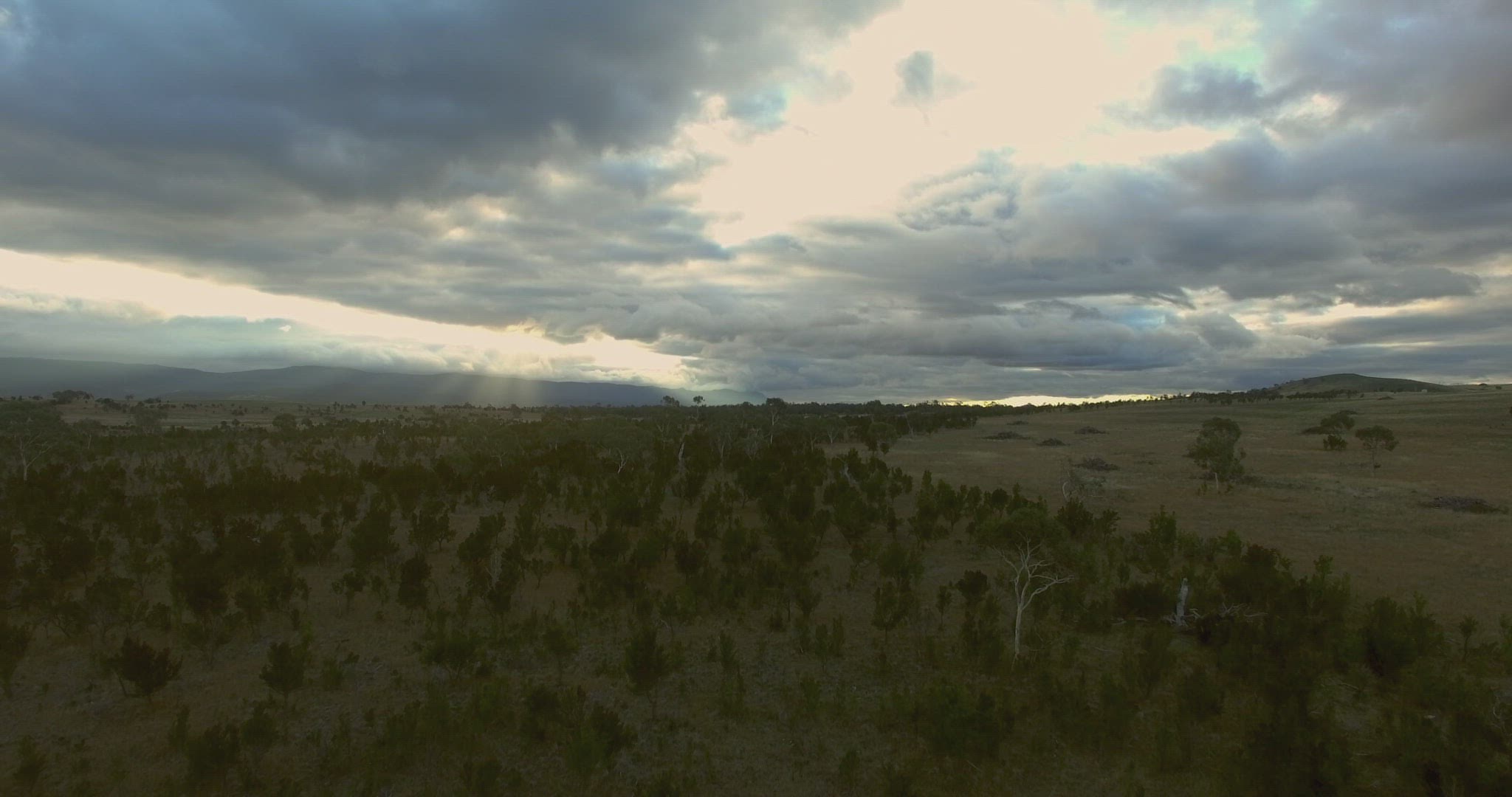 1129745 - Aerial view of Canadian mountains on cloudy day in the autumn