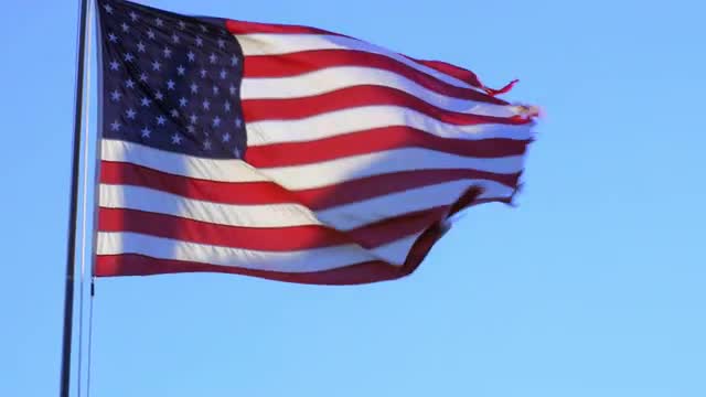 574610 - US flag flaps in wind in slow motion