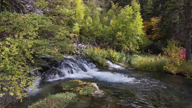 Mist slowly rising off the Snake River near thick forest In Wyoming