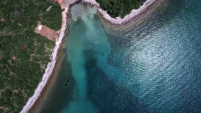 This aerial video introduces a sea landscape with small islands, lagoons, rocky coastlines, sandy beaches with boats surrounded by turquoise crystal clear water.