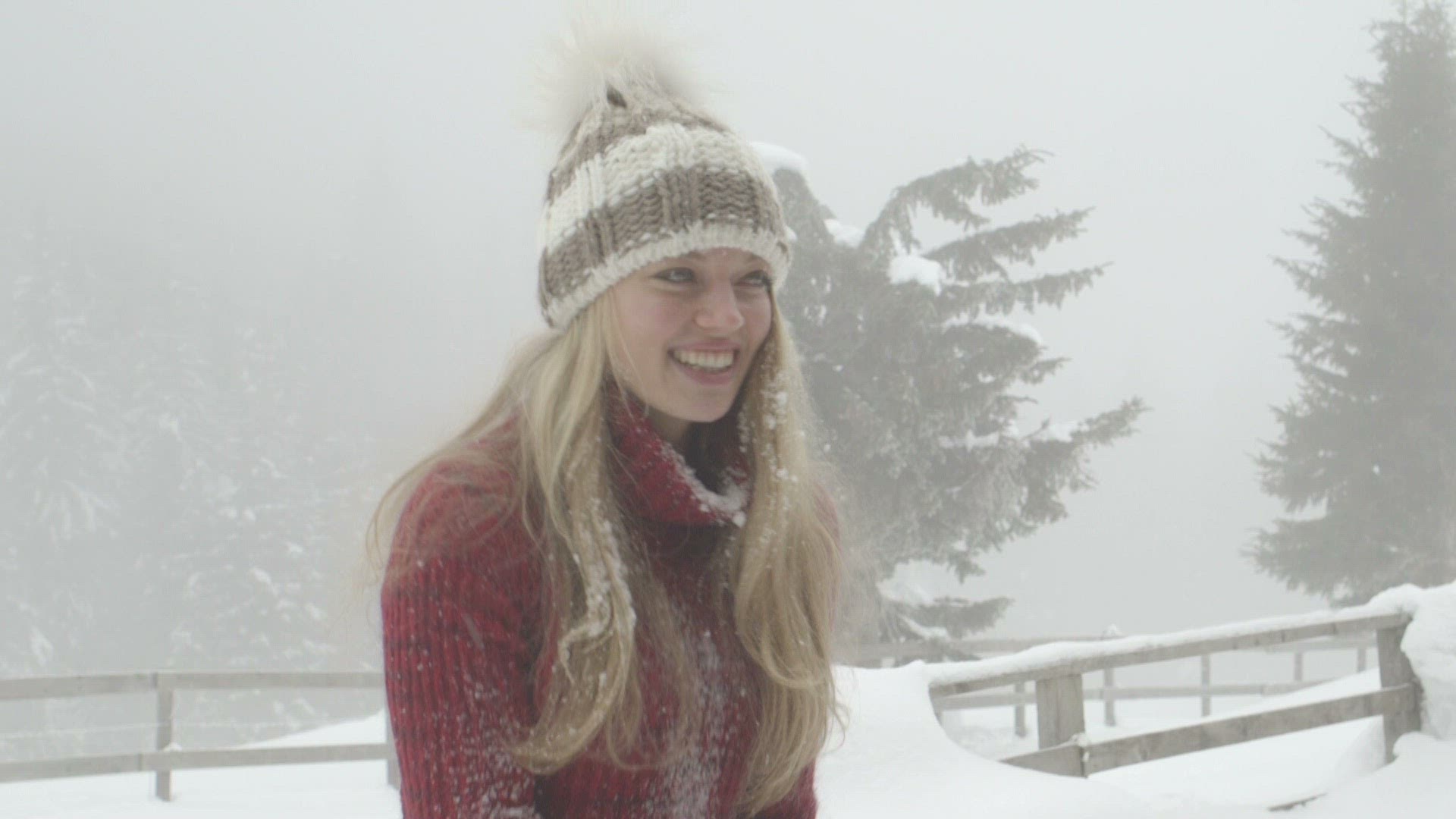 732365 - Ginger Woman Laughing Standing Under Snowfall