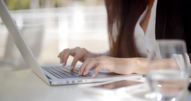 402718 - Female Typing on Laptop Keyboard