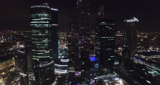 Aerial night business building Moscow city