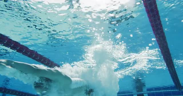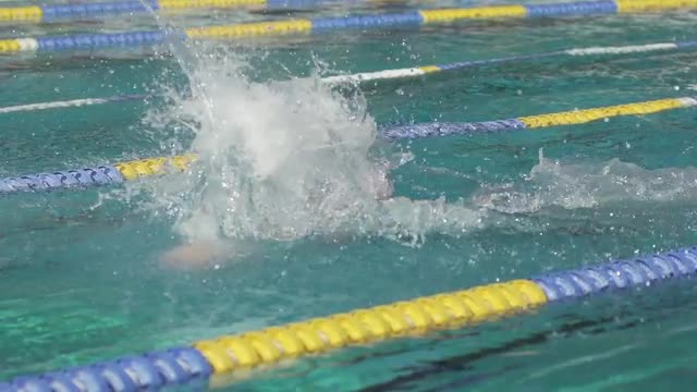 Medium Close-Up Slow-Mo Of Swimmer Swimming Butterfly Stroke Towards The Camera