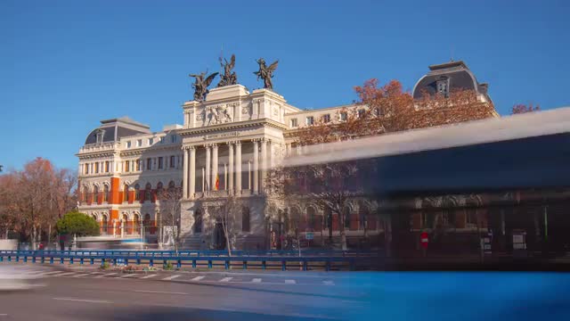 ministery of agricultura traffic street panorama 4k time lapse spain madrid