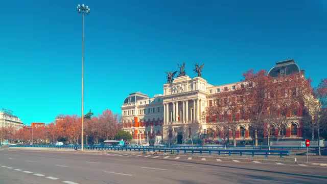 > ministery of agricultura traffic street panorama 4k time lapse spain madrid