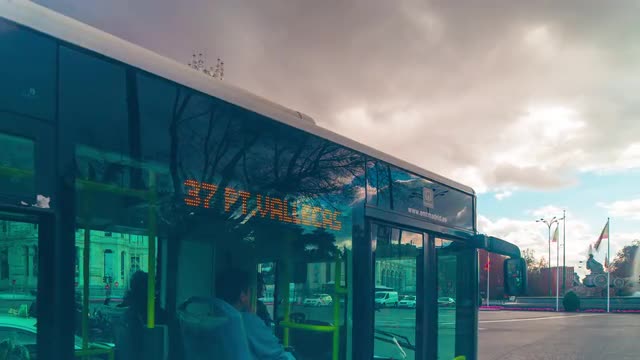 > cloudy weather placa de cibeles traffic panorama 4k time lapse spain