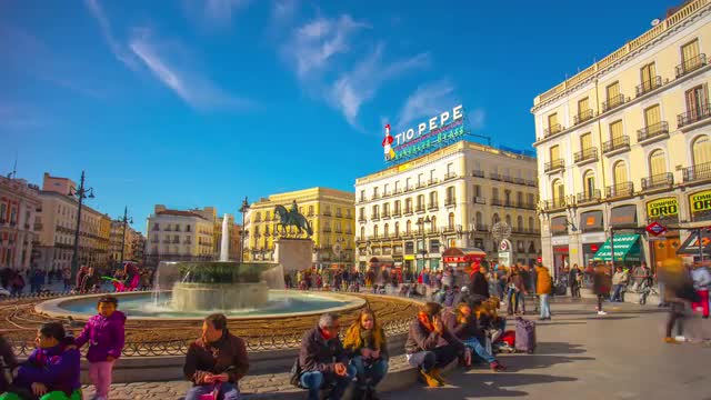 madrid sunny day placa puerto del sol panorama 4k time lapse spain