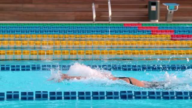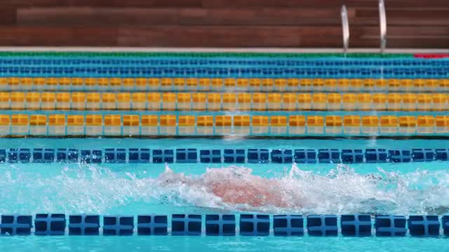 Medium Close-Up Tracking Slow-Mo Of A Swimmer Swimming Crawl Stroke