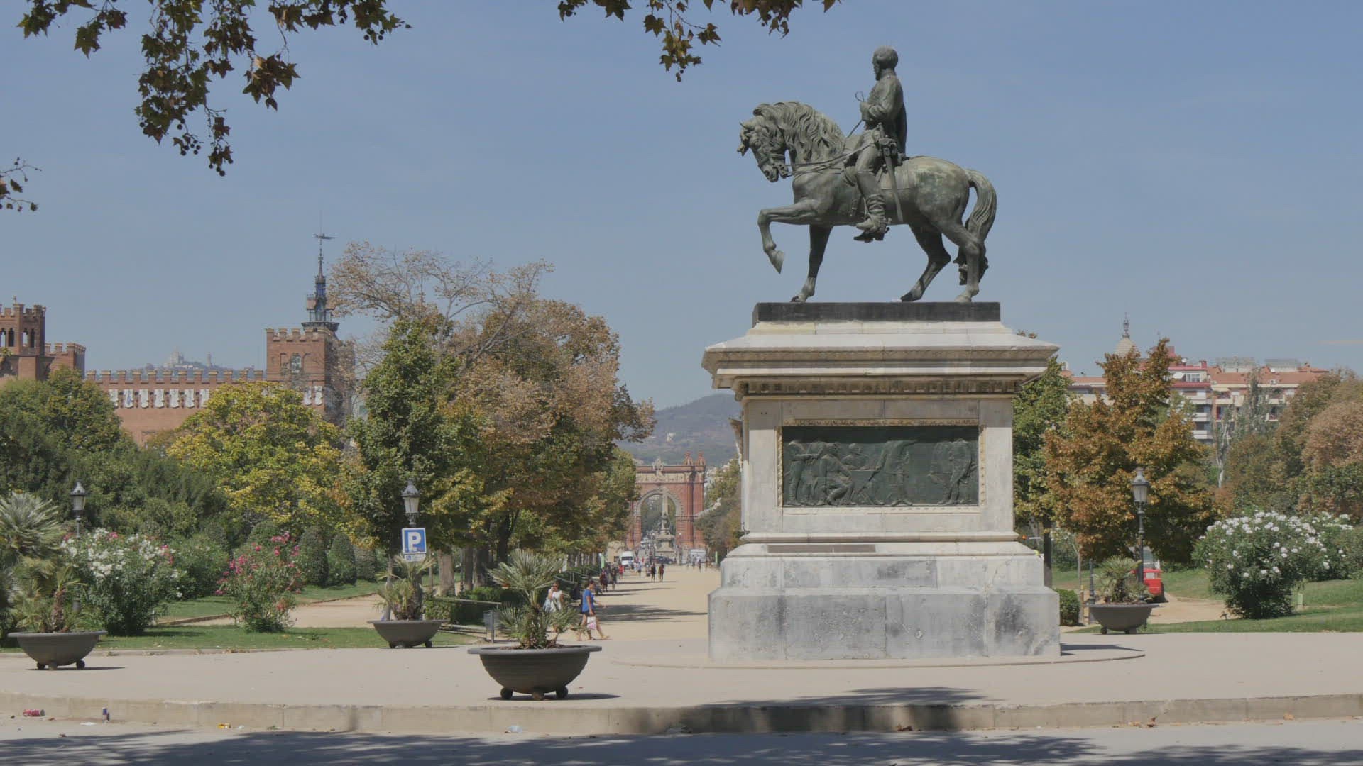 barcelona ciutadella park sun light pond panorama 4k time lapse spain