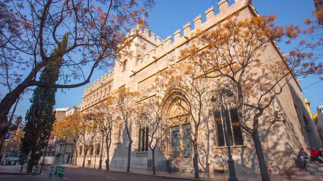 > spain sun light valencia silk exchange building 4k time lapse