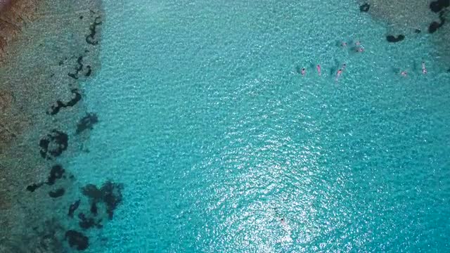 This aerial video introduces a sea landscape with small islands, lagoons, rocky coastlines, sandy beaches with boats surrounded by turquoise crystal clear water.