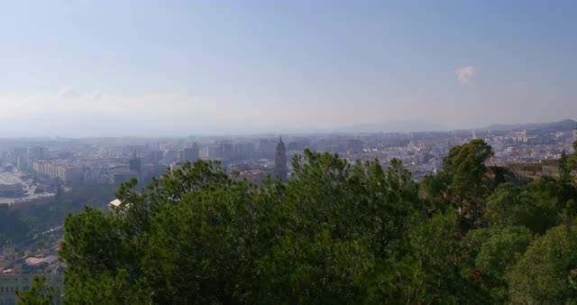 malaga sun light day famous cathedral pine view 4k spain