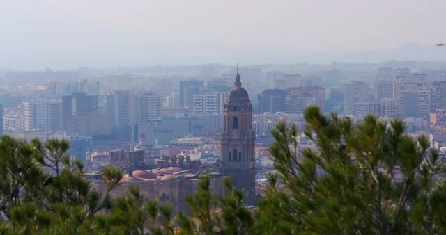 spain malaga sun light day famous cathedral pine view 4k