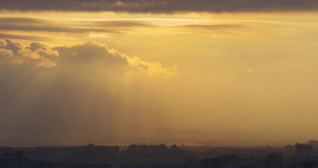 > spain malaga sunset sky city panorama view 4k
