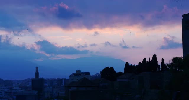 > spain malaga sunset sky city panorama view 4k