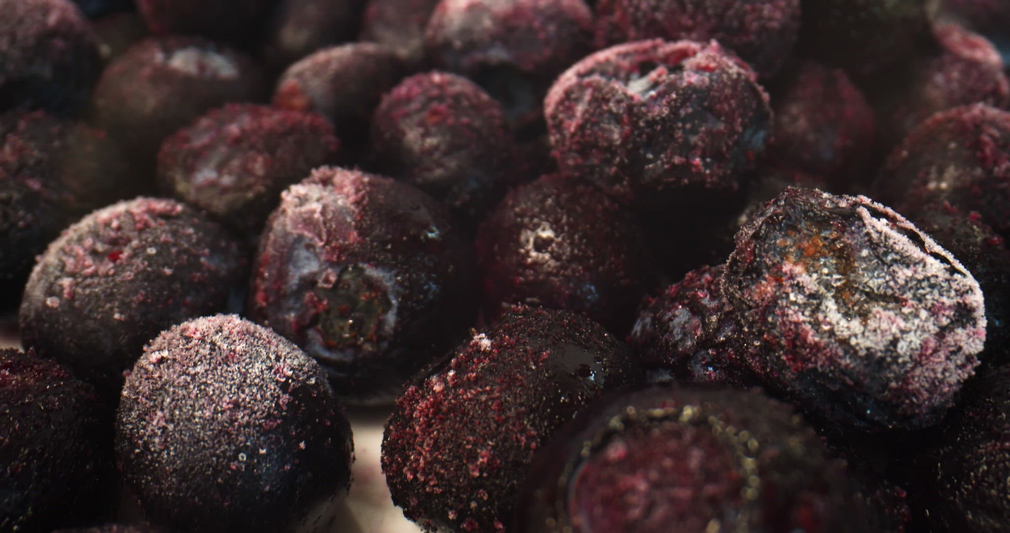 2169104 - Flying over frozen blueberries with a macro probe lens on slider.