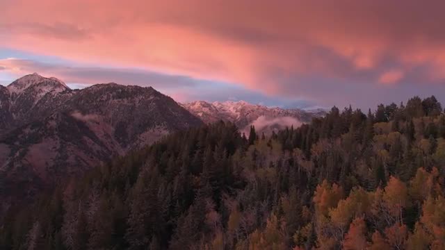 744941 - Aerial panning view of aspen trees in forest.