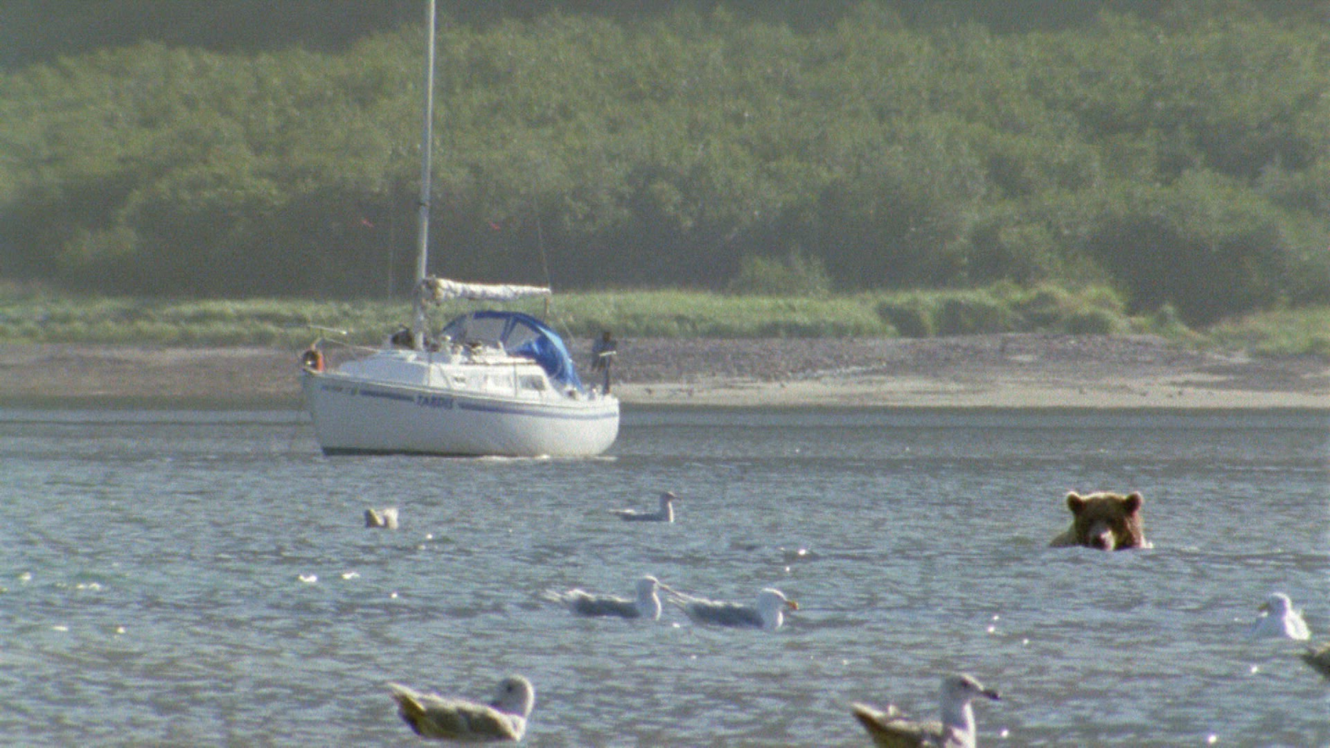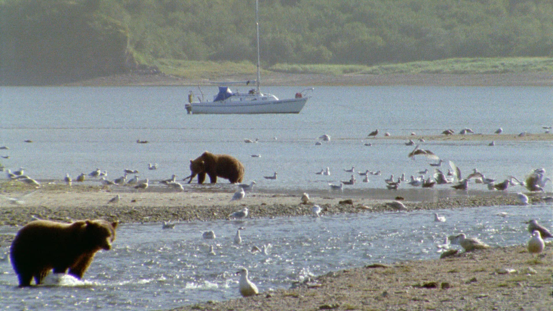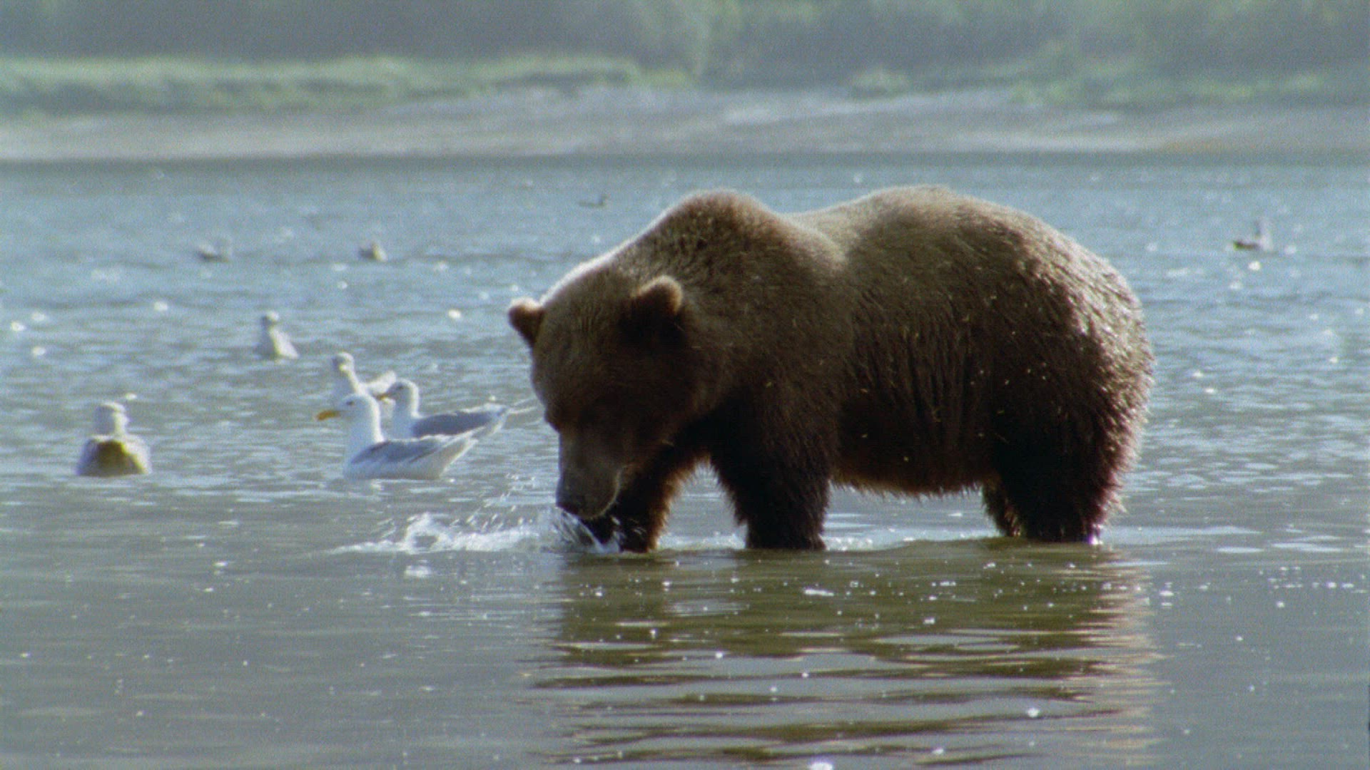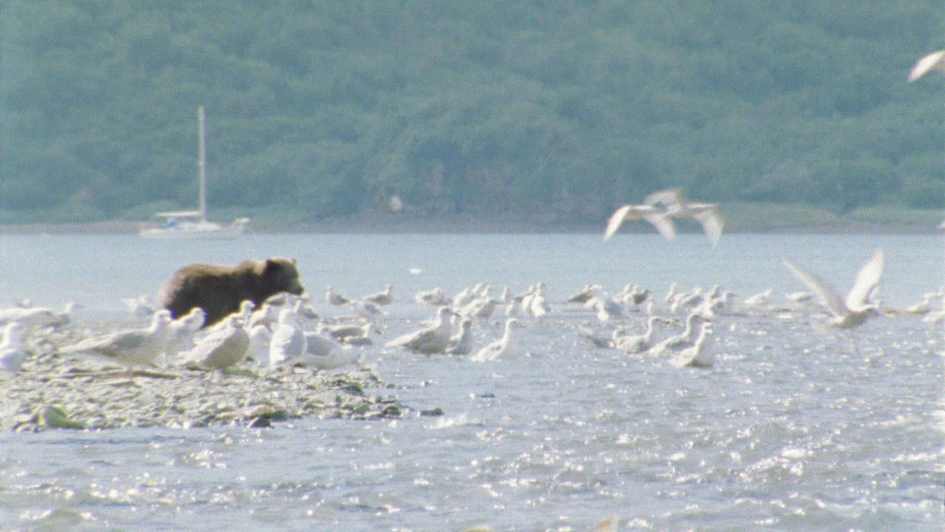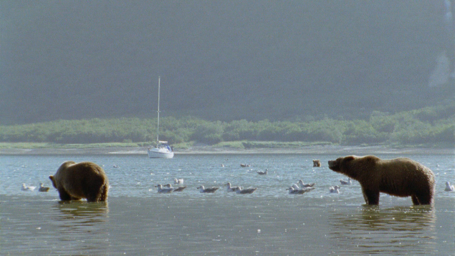 > Whales swimming along the shore in Alaska