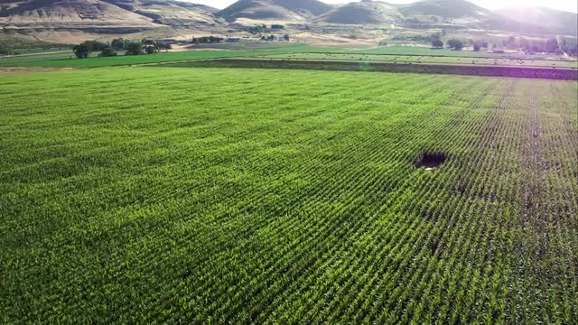 Slowly flying over cornfield in Utah.