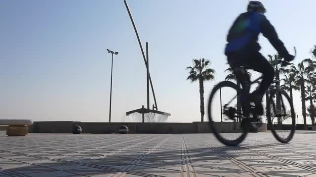 day light bicycle riding beach bay 4k spain valencia slow motion 96fps