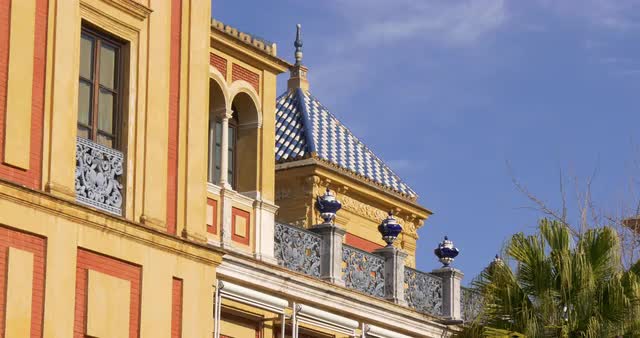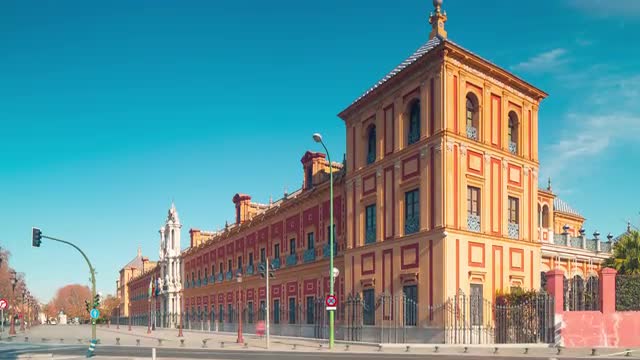 750919 - seville sun light traffic view on san telmo palace 4k time lapse spain