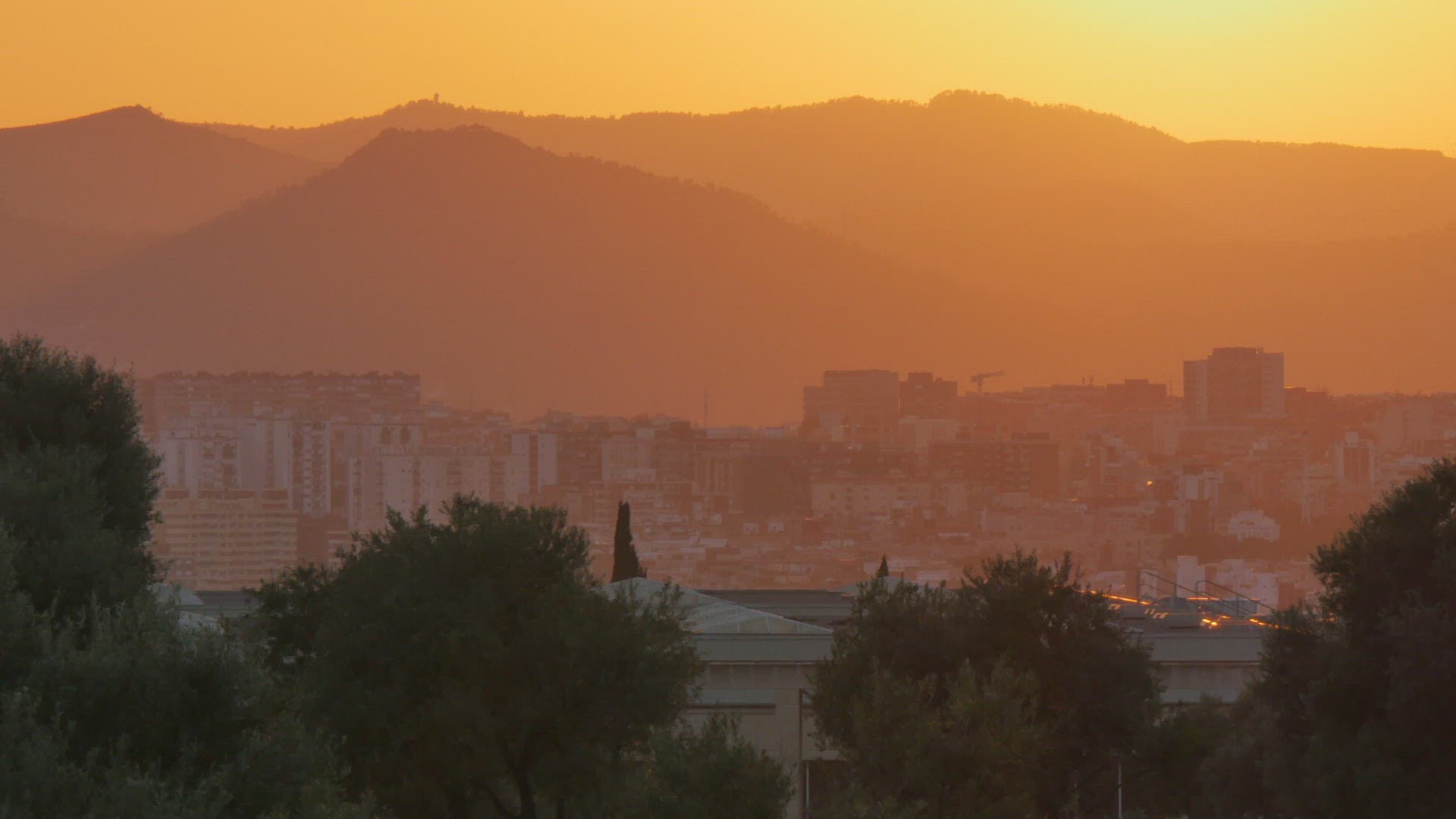 barcelona sunset light port factory 4k spain