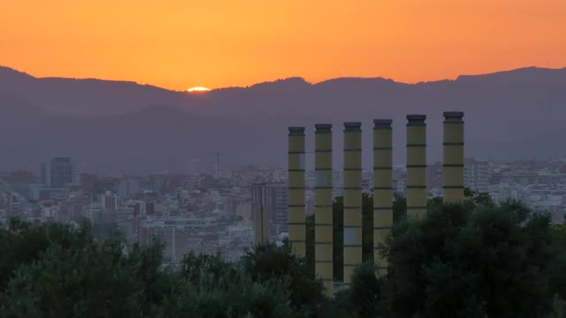 > spain barcelona sunset light port factory 4k