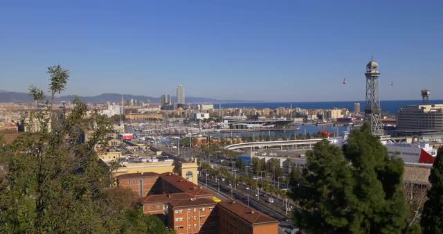 742515 - spain barcelona city sunset port walking bay 4k time lapse