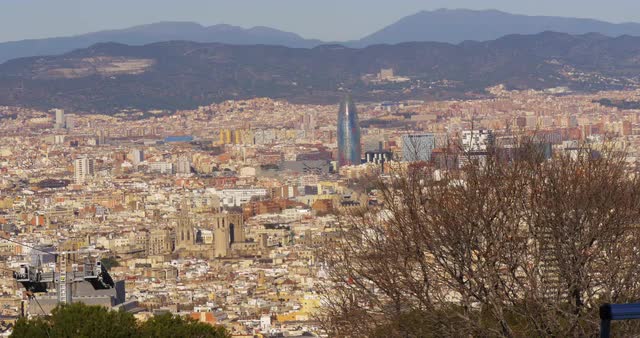 > spain barcelona city day light panorama mountain view 4k