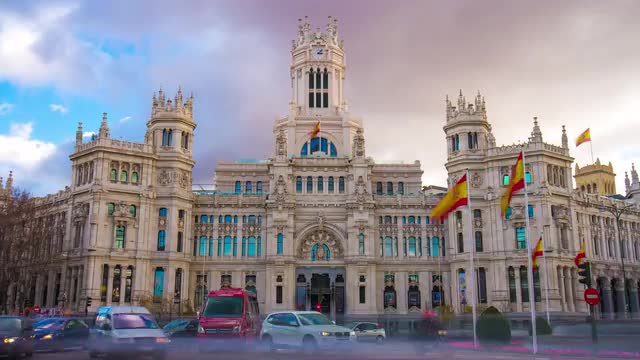 spain beautiful sky madrid central post office on placa de cibeles 4k