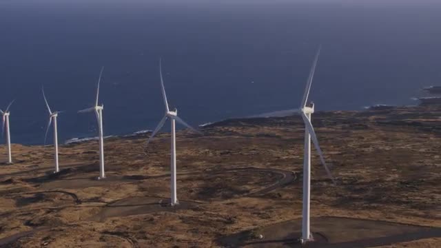 748334 - Windmills behind clouds on a mountain in Hawaii