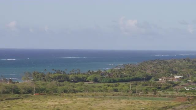 > Aerial over the sea towards the coast of Hawaii