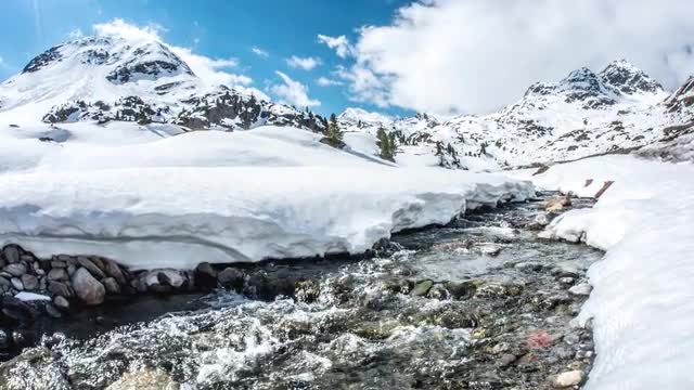 Long distance timelapse of a spring in the Austrian mountains in 4k quality.